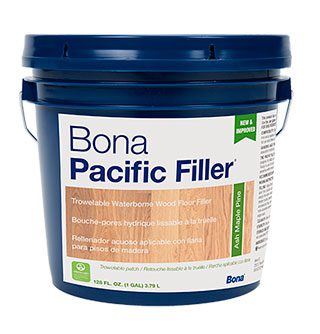Bona Pacific Filler é um composto à base d’agua projetado para preencher buracos, rachaduras, lascas, goivas e bordas quebradas em pisos de madeiras antes do acabamento.