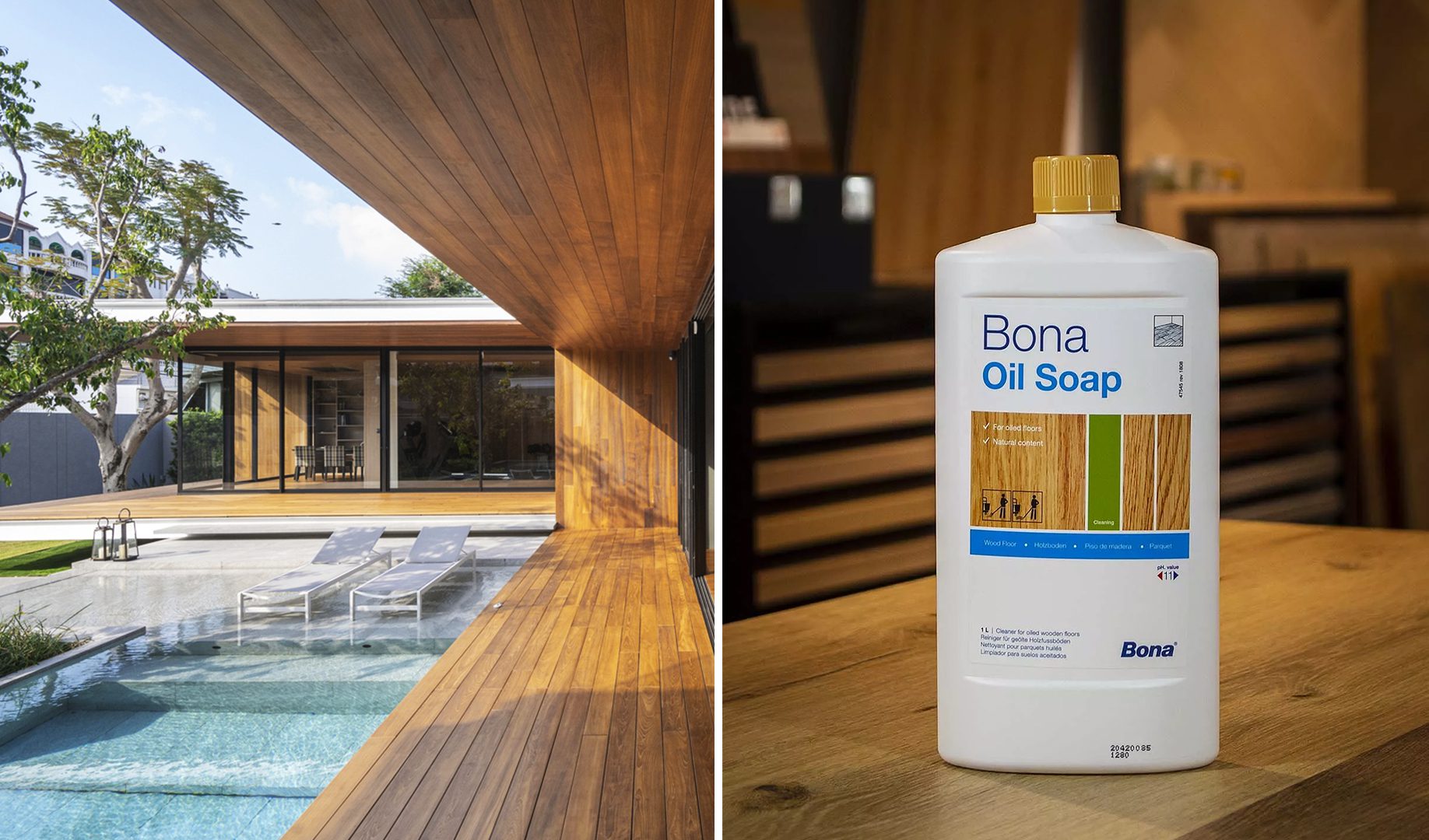 Para manter a beleza e a integridade do deck, a limpeza é fundamental. O ideal é usar o Bona Soap, um agente desenvolvido especialmente para superfícies oleadas. Com pH equilibrado, ele limpa enquanto hidrata e nutre a madeira. Sua fórmula de alto rendimento permite diluir 200 ml para cada 10 litros de água, garantindo eficiência sem desperdícios.